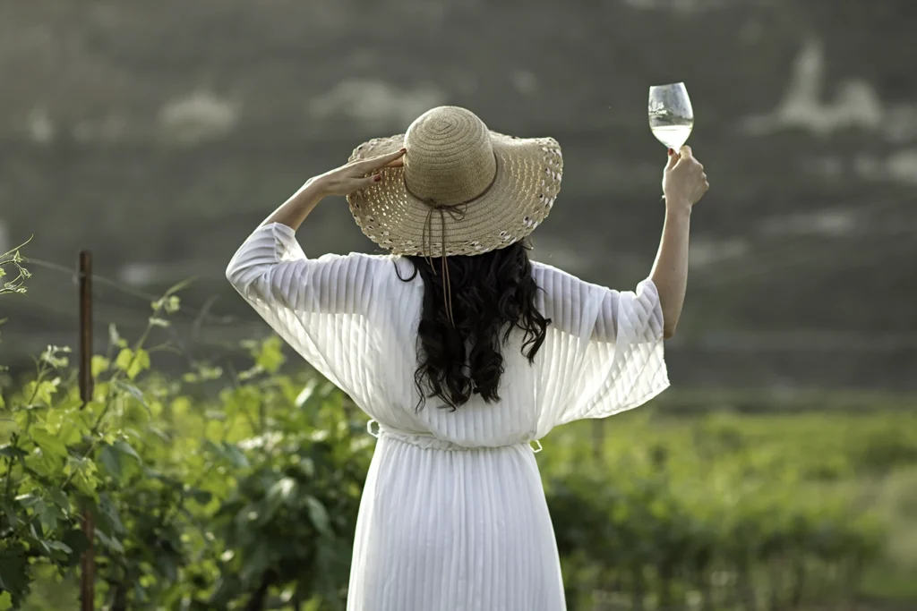Περπατήστε χαλαρά μέσα στις σειρές των αμπελιών, απολαμβάνοντας κρασιά που έχουν φτιαχτεί από τα σταφύλια του κτήματός μας.