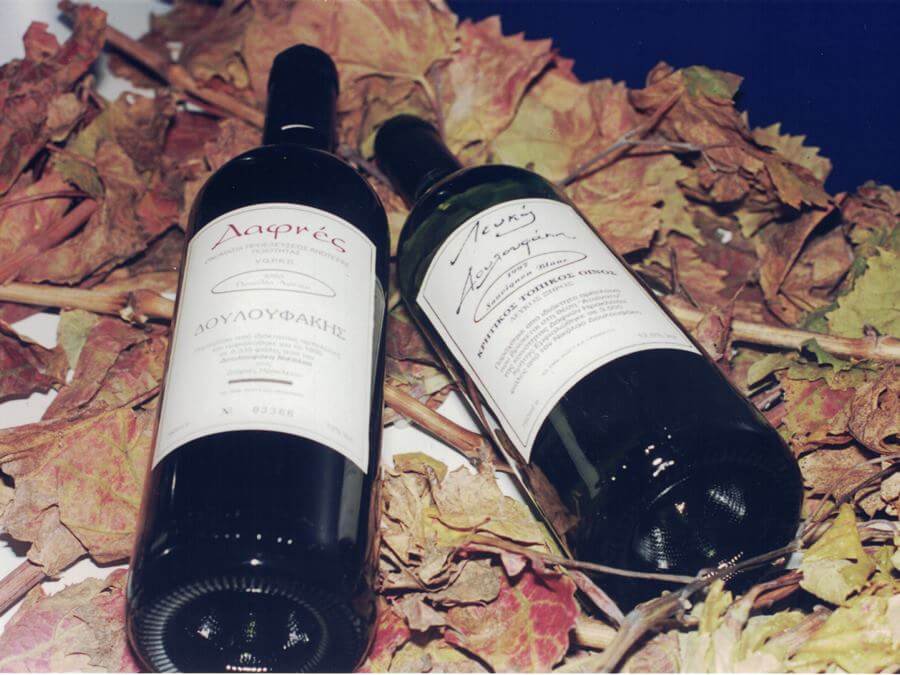 Γίνεται η πρώτη εμφιάλωση με δύο κρασιά, ένα ερυθρό ξηρό από Λιάτικο, Π.Ο.Π. Δαφνές, και ένα λευκό από Sauvignon Blanc σε φιάλες 750ml.