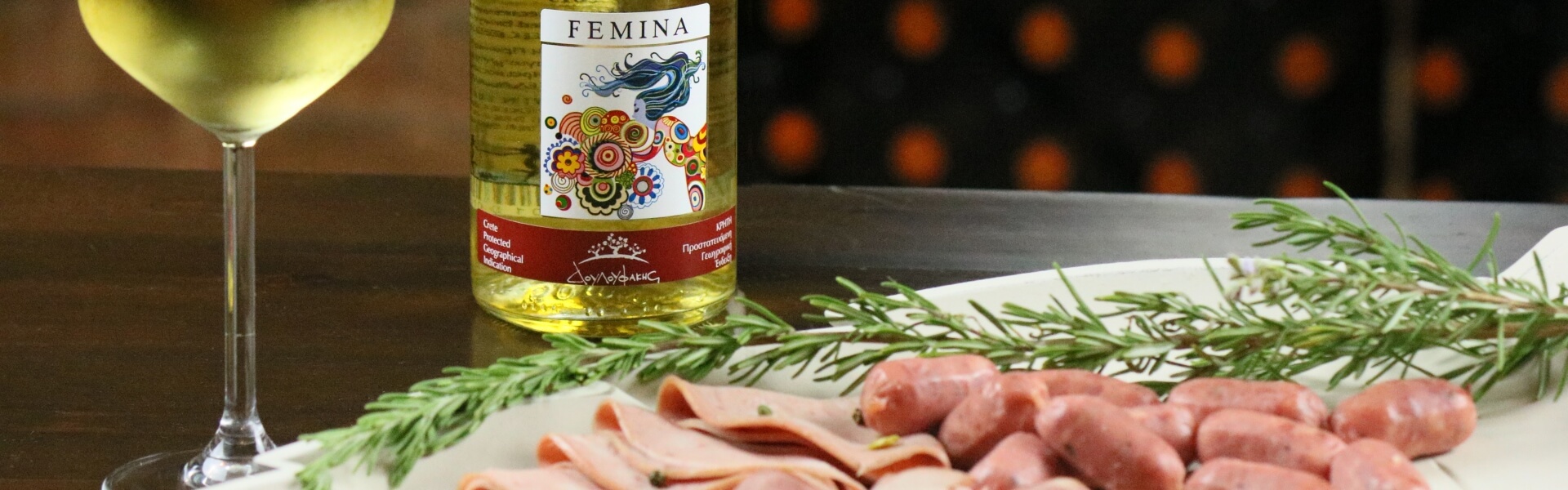Ένα αρωματικό λευκό κρασί, όπως το Femina Δουλουφάκη από την ποικιλία Malvasia di Candia Aromatica,  μπορεί να σερβιριστεί συνοδεία ενός ελαφριού σε γεύση ζαμπόν (jambon).